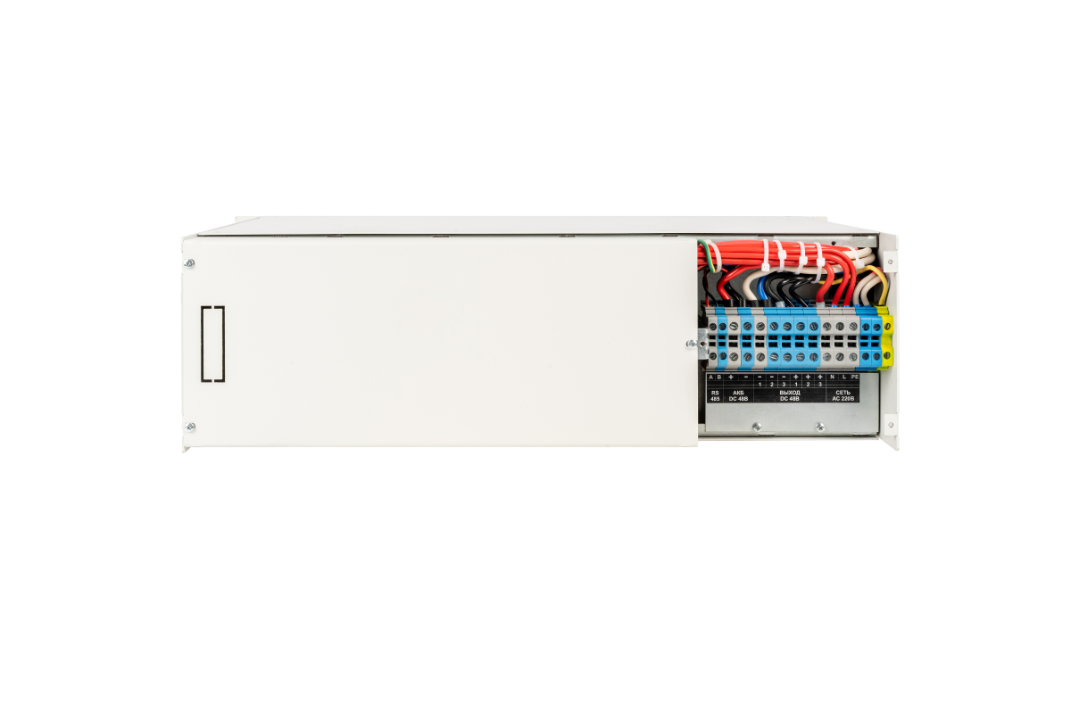 Преобразование AC 220В в DC 24В с током нагрузки (двух выпрямителей) до 50А.Предназначен для установки в 19" конструктив. Высота корзины 3U.