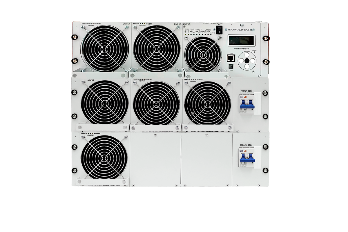 В данной модели УКУ-207.12-LAN-BP-M-25 встроен непосредственно в корзину с байпасом и модулем DC/AC.