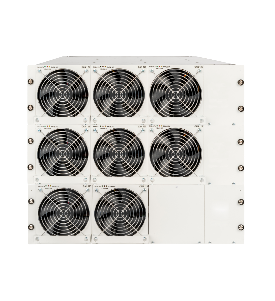 Инверторная система DC/AC-48(60)/220B-32000BA-9U-23, созданная на основе модульных преобразователей DC/AC-48(60)/220В-4000ВА-3U-23, является эффективным и надежным решением для питания различного электронного оборудования и средств связи переменным однофазным напряжением 220В с частотой 50Гц.