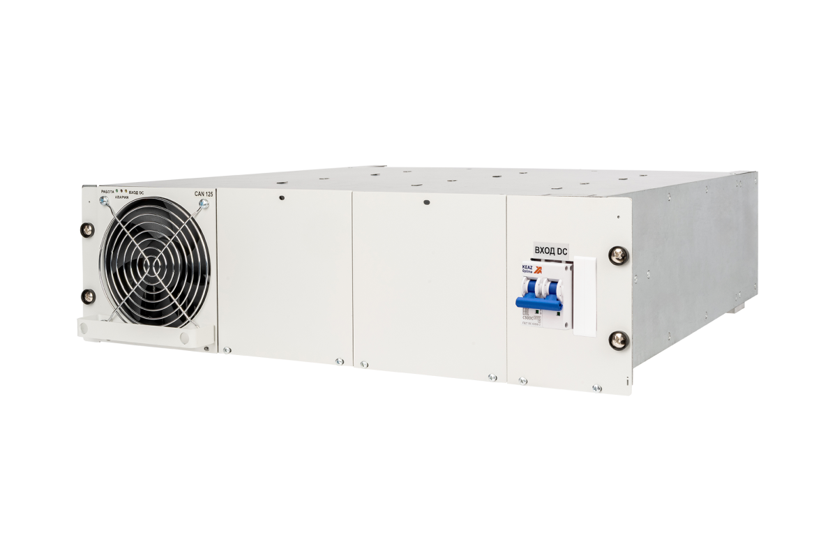 Имеет два входа (DC и АС). Предназначена для установки в 19" конструктив. Высота корзины 3U. Возможно расширить мощность до 18000 Вт (22500ВА) в конструктиве трех корзин. Основные тех. характеристики