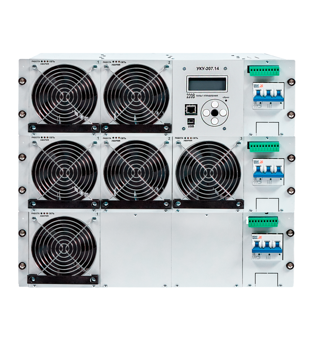 Модульная структура ИПС позволяет гарантировать "горячий" резерв и "горячую" замену силовых модулей-выпрямителей. В данной модели есть возможность расширения мощности до 96 кВт за счет увеличения количества модулей.