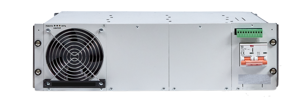 Конвертор выполнен в базовом конструктивном исполнении 19’’ высотой 3U. Вентилятор, который используется для охлаждения системы, интегрирован в модуль-конвертор. Это позволяет эффективно распределять и отводить тепло, генерируемое модулем-конвертором, и предотвращать перегрев. Управление вентилятором осуществляется сигналом, поступающим с контроллера управления конвертором (УКУ). Конверторы используют модульную структуру, что позволяет обеспечивать возможность быстрой замены и резервирования силовых модулей-конверторов. Это также способствует созданию эффективных систем электропитания большой мощности.