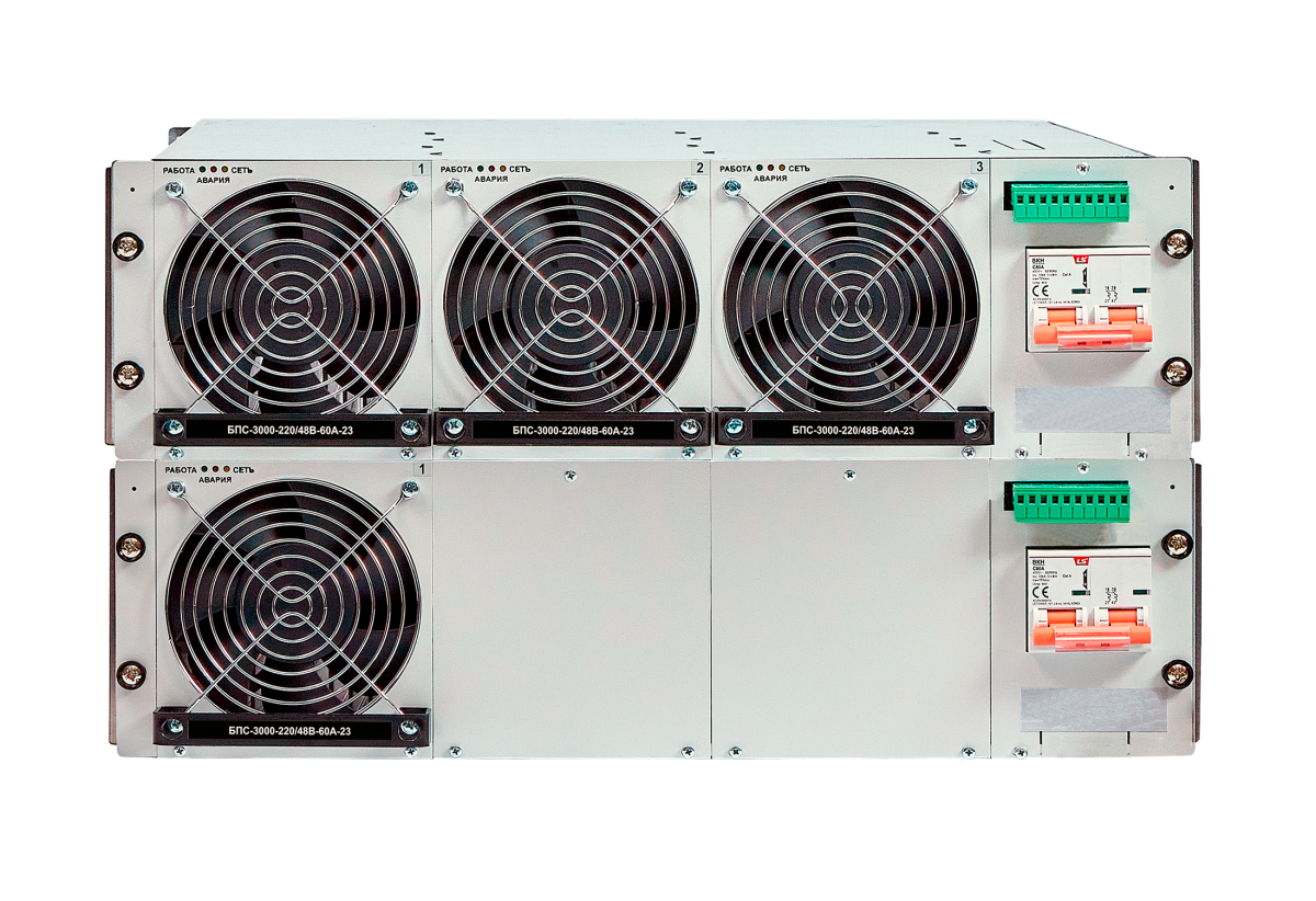 Зарядно-выпрямительное устройство источник питания стабилизированный ИПС AC/DC (220/48) состоит из модулей-выпрямителей БПС-3000-220/48В-60А-23, предназначено для установки в стойку 19’’.