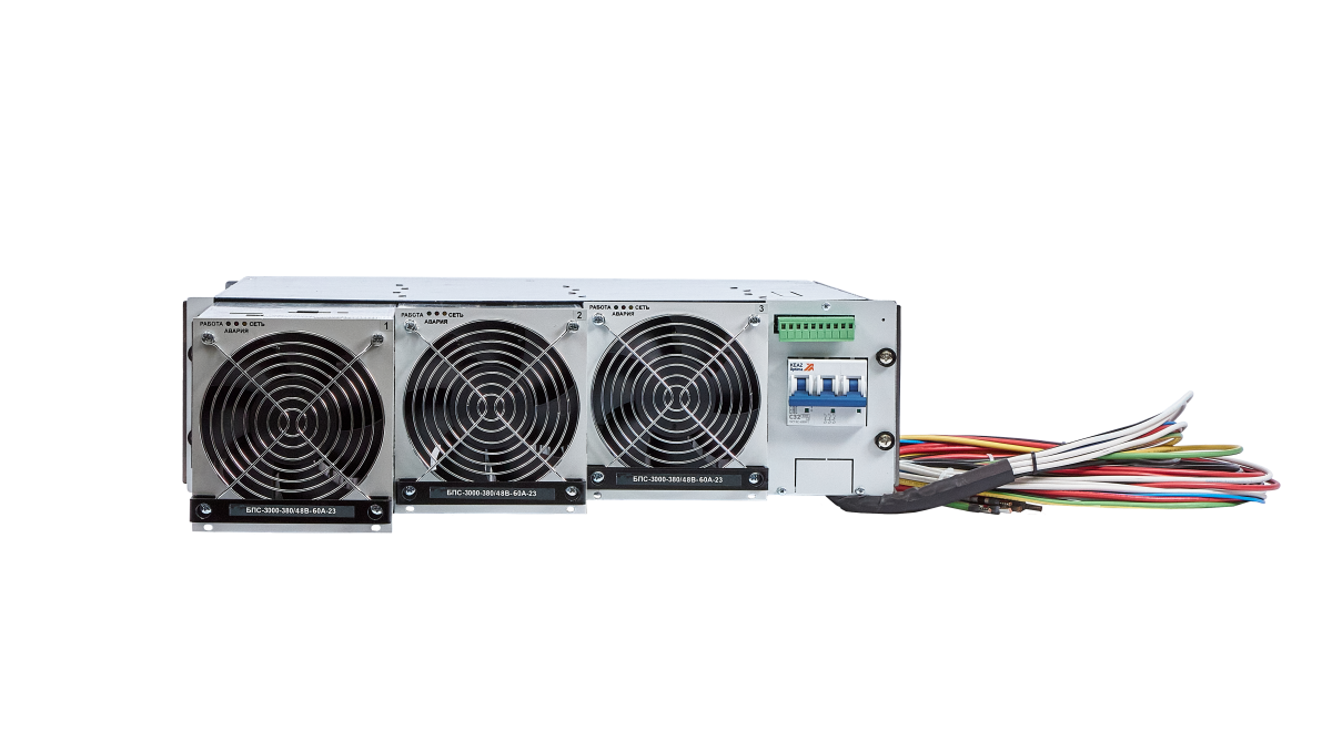Зарядно-выпрямительное устройство источник питания стабилизированный ИПС AC/DC (380/48) состоит из модулей-выпрямителей БПС-3000-380/48В-60А-23, предназначено для установки в стойку 19’’.
