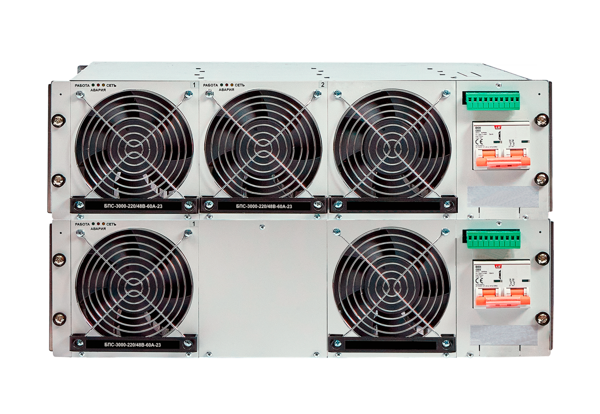 Зарядно-выпрямительное устройство источник питания стабилизированный ИПС AC/DC (220/48) состоит из модулей-выпрямителей БПС-3000-220/48В-60А-23, предназначено для установки в стойку 19’’.